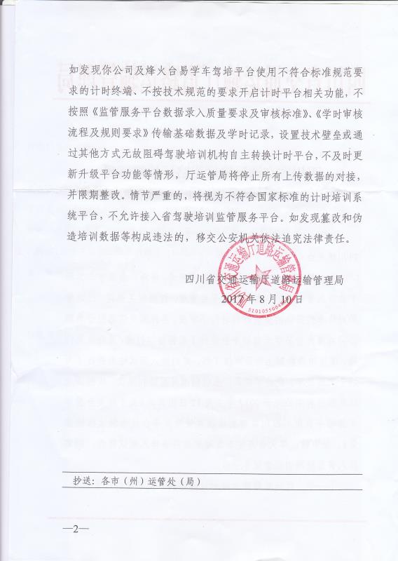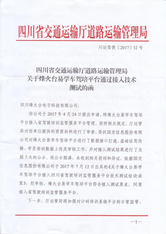 【烽火台易学车驾培平台】严格执行《机动车驾驶员计时培训系统平台技术规范》技术标准和传输协议对接,率先通过国家首批(HTTP、TCP、实车检测**流程)阶段符合性检测。