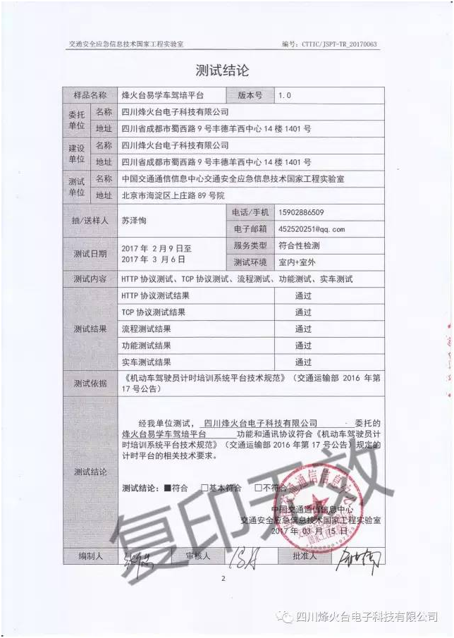 等呀终于等到今天!!!咱们烽火台易学车驾培计时管理平台终于收到合格报告啦!!!!!!!!咱们烽火台易学车驾培计时管理平台终于收到合格报告啦!!!!!!!!咱们烽火台易学车驾培计时管理平台终于收到合格报告啦!!!!!!!!重要的事咱们要说三遍。